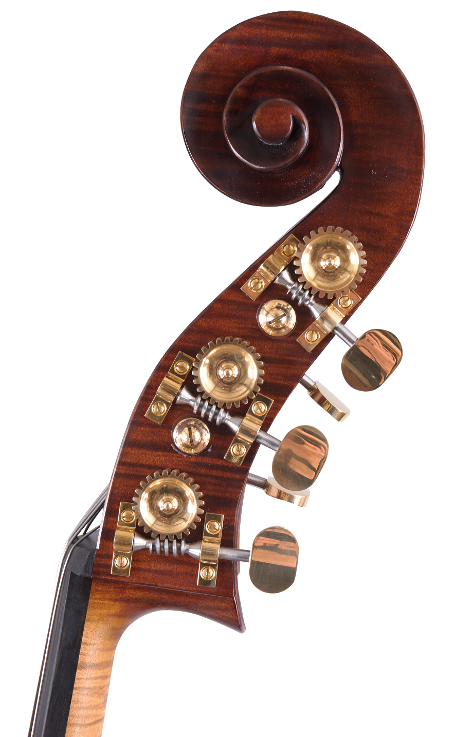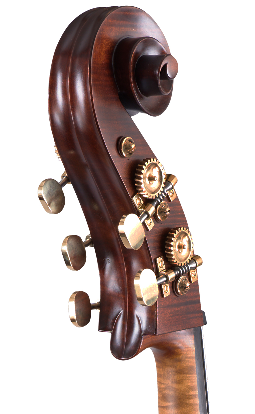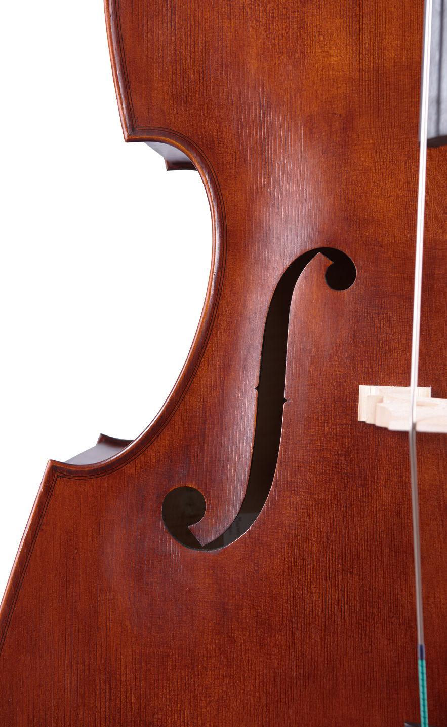This model was first made as a special request by a client wanting a Ruggeri copy but with viol corners. Since then it has become a firm favourite, especially with those who prefer the aesthetics of a viol model or who find them more playable with a German style bow. This is popular as a five-string double bass and is really at home in the orchestra.