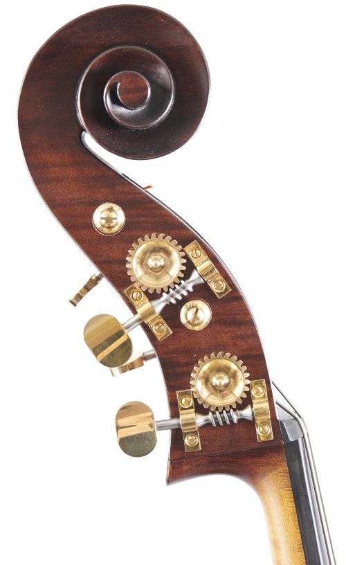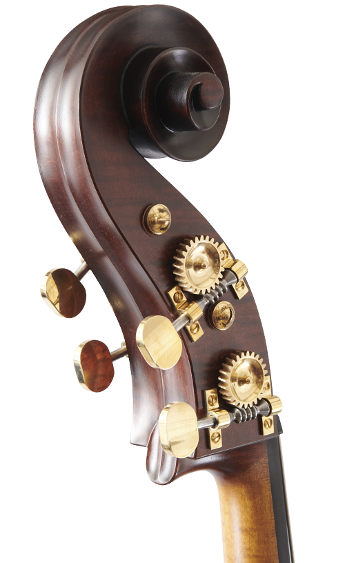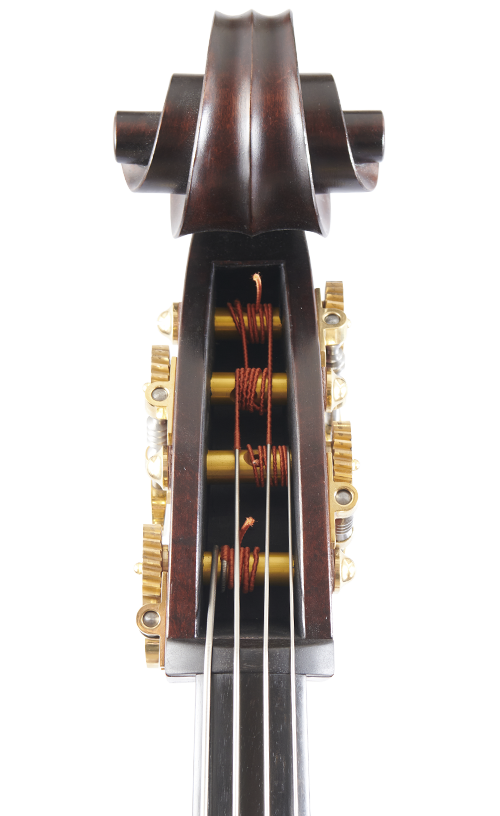 This instrument is based on the incredible Cremonese double bass made by Vincenzo Ruggeri around 1695. For our take on it we have changed the soundholes to those of Hieronymus Amati II and increased the rib depth to create even more air space. The well-proportioned upper shoulders make this model very easy to play despite being a larger instrument.