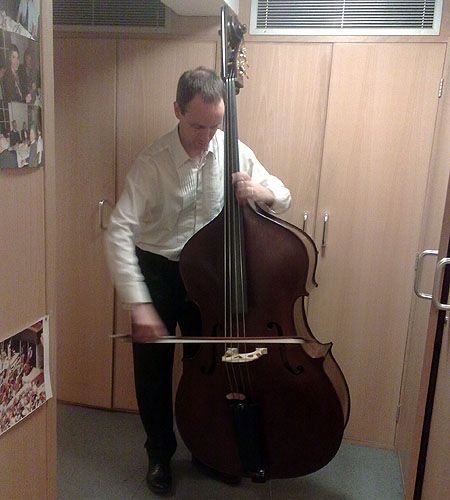 Frank is the principal of the Aarhus Symphony Orchestra in Denmark. "On demand Tom has made an excellent 5 stringed bass for the soloposition in the Aarhus Symphony Orchestra (Denmark). It is an instrument very easy to play and with a beautiful sonorous sound perfect for solos and at the same time with its huge register from the low open b string and up a clear fullbodied bass sound. Together with the new Symphonic Concert Hall in Aarhus (inspired by the Musikverein Saal in Wien) which is said to be the best symphonic concert hall in Denmark the bass feels like having got a Formula 1 racer or a Rolls Royce according to temperament."